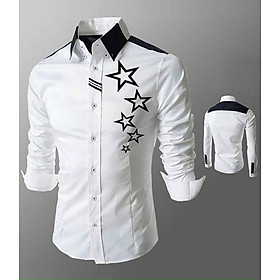 Thiết kế Áo sơ mi nam viền đen vai, cổ họa tiết ngôi sao cao cấp phong cách đường may tỉ mỉ.